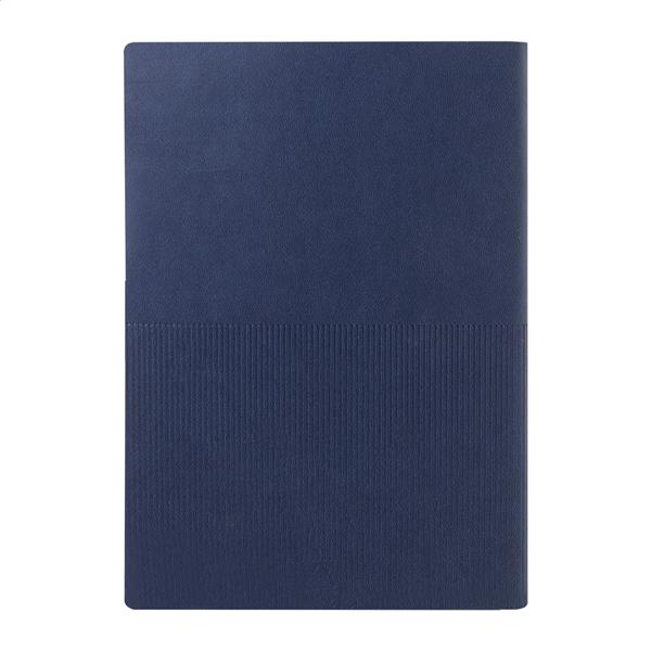 Notes w oprawie z recyklingowanej skóry PU, z ozdobnymi paskami i metalową płytką z logo. Z zakładką i 80 kartkami w linie z papieru z recyklingu. Format A5.