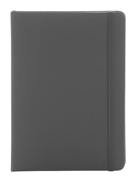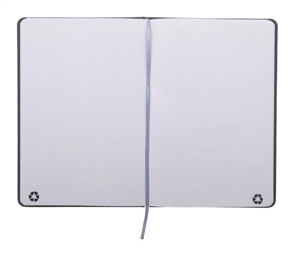 Notes pokryty skórą PU z recyklingu, zawierający 100 gładkich kartek z papieru pochodzącego z recyklingu. Z dopasowaną kolorystycznie zakładką i gumką. Rozmiar A5.