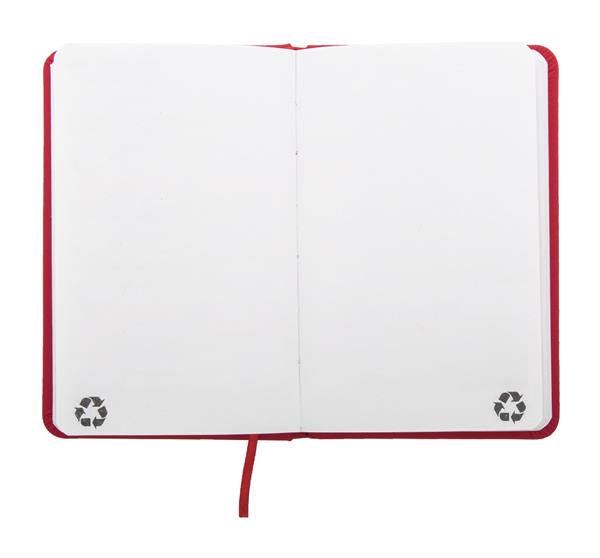 Notes pokryty skórą PU z recyklingu, zawierający 100 czystych kartek z papieru pochodzącego z recyklingu. Z dopasowaną kolorystycznie zakładką i gumką. Rozmiar A6.