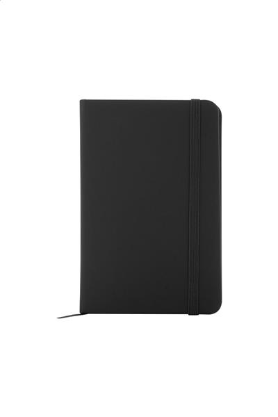 Notes z okładką ze skóry PU z recyklingu ze 100 kartkami w linie z papieru z recyklingu. Z dopasowaną kolorystycznie zakładką i gumką. Rozmiar A6.