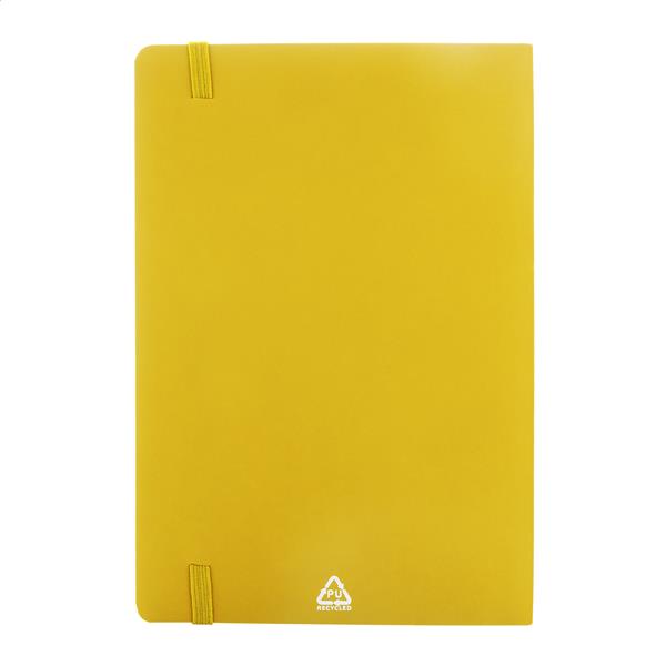 Notes z miękką okładką ze skóry PU z recyklingu, z 80 kartkami w linie z papieru z recyklingu. Z zakładką w pasującym kolorze i gumką. Rozmiar A5.