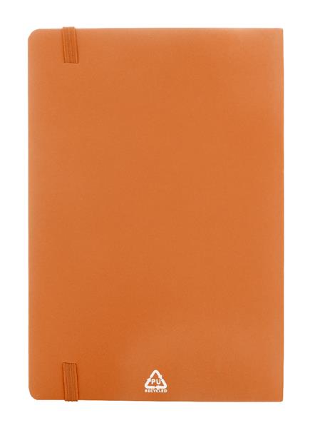 Notes z miękką okładką ze skóry PU z recyklingu, z 80 kartkami w linie z papieru z recyklingu. Z zakładką w pasującym kolorze i gumką. Rozmiar A5.