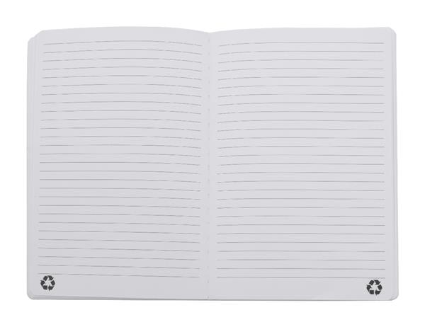 Notes z miękką okładką ze skóry PU z recyklingu, z 80 kartkami w linie z papieru z recyklingu. Z zakładką w pasującym kolorze i gumką. Rozmiar A5.