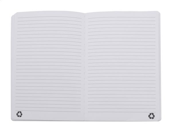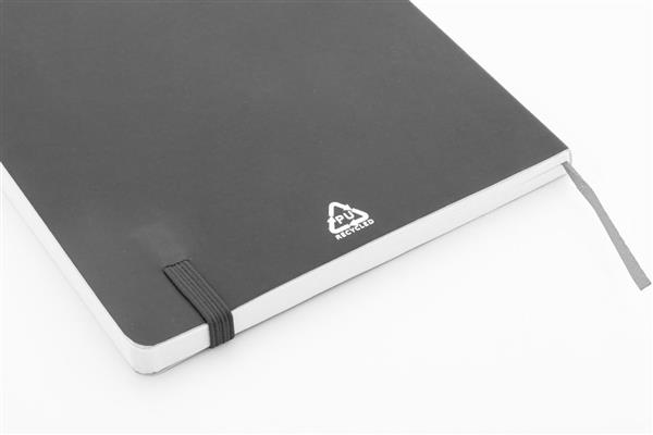 Notes z miękką okładką ze skóry PU z recyklingu, z 80 kartkami w linie z papieru z recyklingu. Z zakładką w pasującym kolorze i gumką. Rozmiar A5.