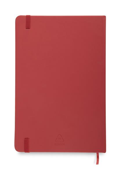 rVITAL to praktyczny notes reklamowy w formacie A5, idealny do codziennego użytku w biurze lub w terenie. Zawiera 70 szytych kartek w kratkę, wykonanych z papieru w kolorze ecru o gramaturze 70 g/m2. Miękka okładka z recyklingowanego materiału skóropodobnego (PU) dobrze znosi intensywne użytkowanie, a elastyczna gumka ułatwia zamykanie. rVITAL świetnie sprawdzi się jako funkcjonalny gadżet promocyjny lub element firmowego zestawu upominkowego.
