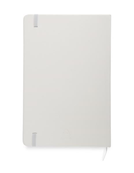 rVITAL to praktyczny notes reklamowy w formacie A5, idealny do codziennego użytku w biurze lub w terenie. Zawiera 70 szytych kartek w kratkę, wykonanych z papieru w kolorze ecru o gramaturze 70 g/m2. Miękka okładka z recyklingowanego materiału skóropodobnego (PU) dobrze znosi intensywne użytkowanie, a elastyczna gumka ułatwia zamykanie. rVITAL świetnie sprawdzi się jako funkcjonalny gadżet promocyjny lub element firmowego zestawu upominkowego.