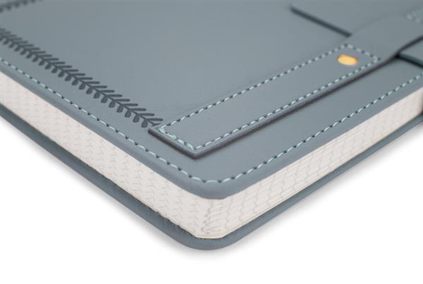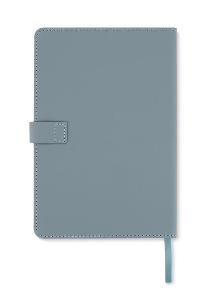 Notes SCRIBO w formacie A5 to elegancki notatnik z 104 kartkami w kratkę, idealny do codziennego użytku. Twarda oprawa z materiału skóropodobnego wyróżnia się dekoracyjnym tłoczeniem, przeszyciem oraz charakterystycznym paskiem z ozdobnymi nitami. Notes zamykany jest na wsuwany pasek, który zabezpiecza zawartość przed przypadkowym otwarciem. Dodatkowo wyposażony jest w tasiemkę do zaznaczania stron. Świetnie sprawdzi się jako gadżet reklamowy z możliwością znakowania.
