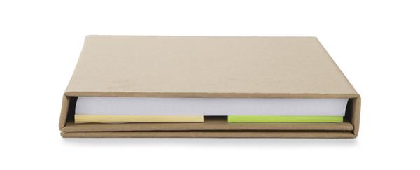 Modny, ekologiczny notes, który chowa w swoim wnętrzu linijkę, karteczki samoprzylepne, miejsce na wizytówki oraz długopis. Logo nadrukujemy na notesie.