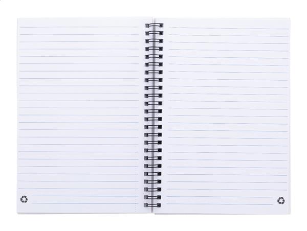Spiralny notes w oprawie z papieru z recyklingu, zawierający 80 kartek w linie z papieru z recyklingu. Format A5.