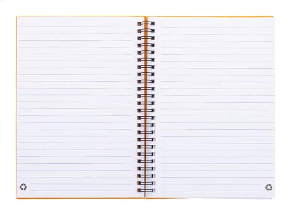 Spiralny notes w oprawie z papieru z recyklingu, zawierający 80 kartek w linie z papieru z recyklingu. Format A5.