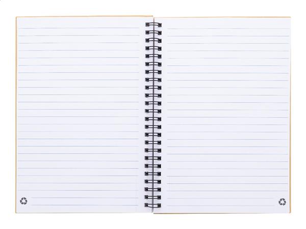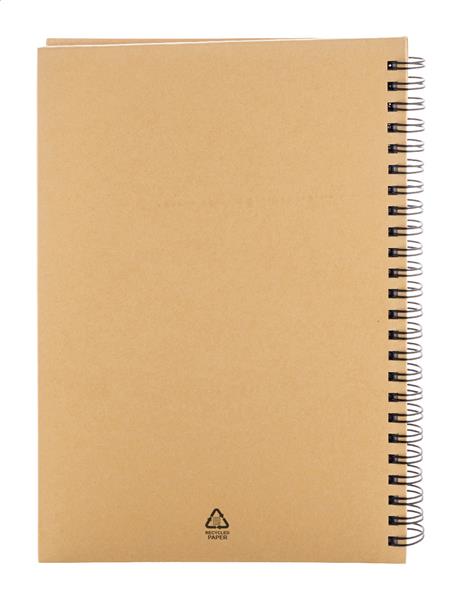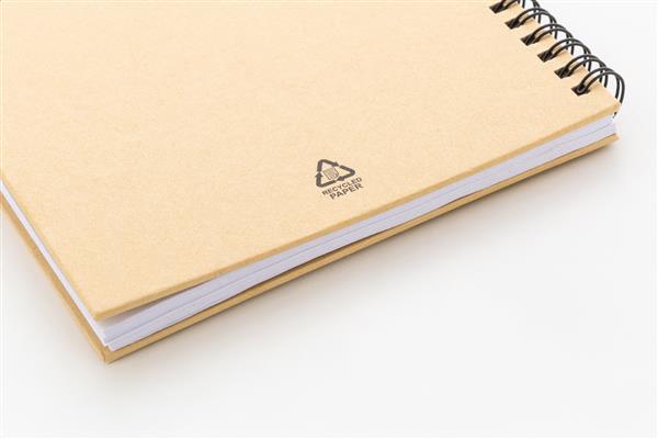 Spiralny notes w oprawie z papieru z recyklingu, zawierający 80 kartek w linie z papieru z recyklingu. Format A5.