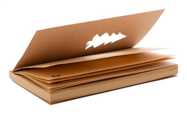 Notes z papieru kraft z wykrojoną choinką na okładce i 85 czystymi kartkami z papieru kraft z recyklingu.