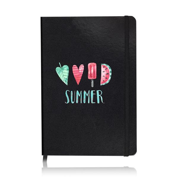Notes A5 w kratkę, w twardej oprawie i kieszenią wewnątrz. Posiada 160 stron. Rozmiar: 14,7 x 21,5 x 1 cm S1 (sitodruk): 10 x 15 cm DC2 (druk cyfrowy UV do 30 cm2): 10 x 5 Kolor: Czarny