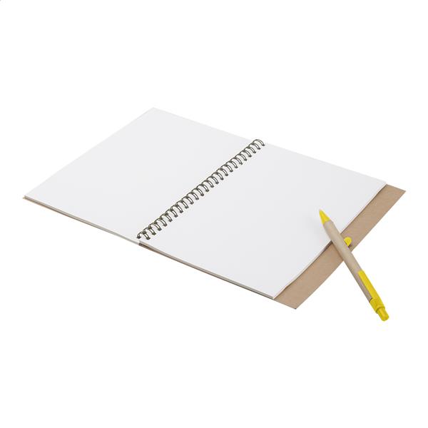Spiralny notes z papieru z recyklingu z 60 gładkimi kartkami i długopisem z papieru.