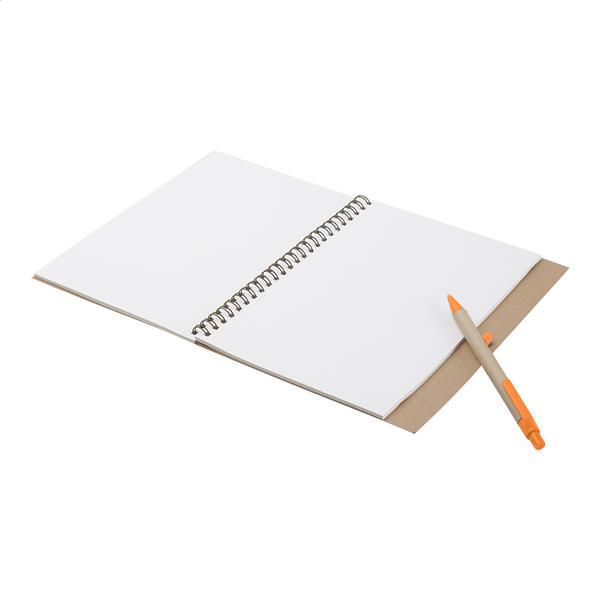 Spiralny notes z papieru z recyklingu z 60 gładkimi kartkami i długopisem z papieru.
