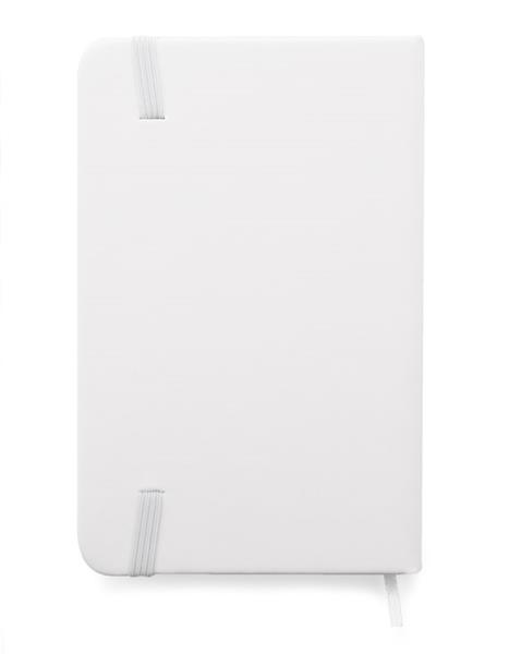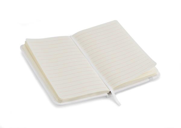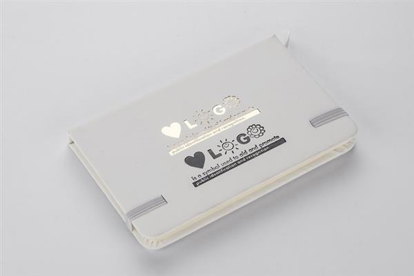 Gustowny notes A6 z kolorową gumką wykonany z materiału skóropodobnego (PU). Notes zawiera 80 kartek ecru w linie koloru pomarańczowego. Logo nadrukujemy na okładce.