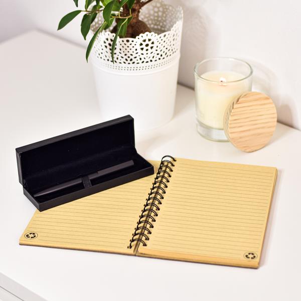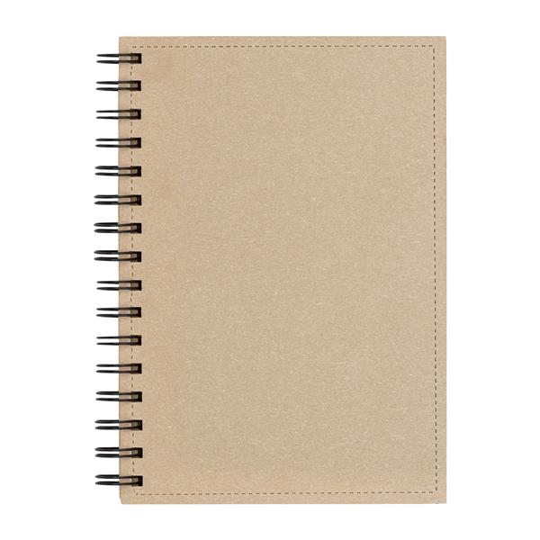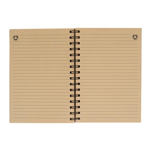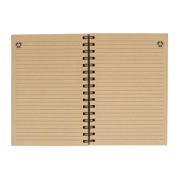 70 kartkowy notes w linie z brązowego papieru z recyklingu. Kartki z papieru o gramaturze 70g/m2. Sztywna okładka (1250 g/m2) na metalowej spirali.