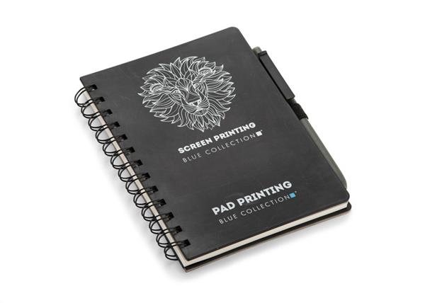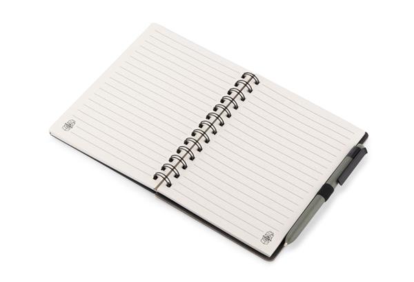 ARSEN to zestaw składający się z długopisu oraz notesu z twardą okładką i praktyczną spiralą. Dzięki 70 kartkom w linie, posiada mnóstwo miejsca na zapisywanie pomysłów, planów czy notatek z konferencji. Zestaw ARSEN został wyprodukowany z recyklingowanych kartonów po mleku.