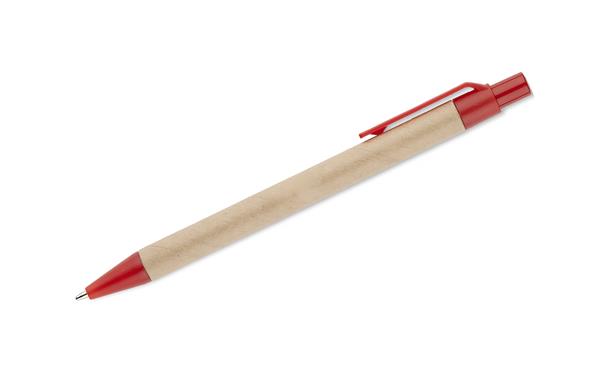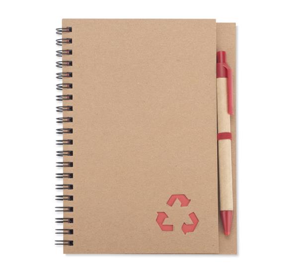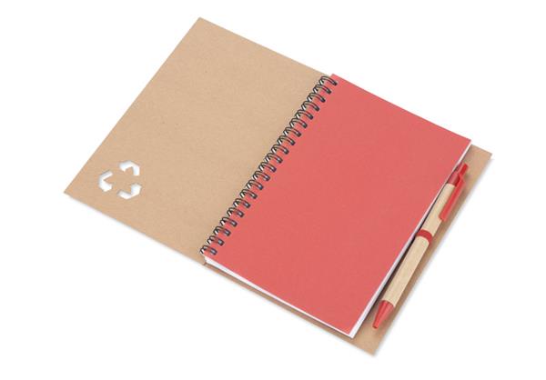 Notes SERENO na spirali w klasycznej, papierowej okładce. Posiada 70 kartek w linie. Do notesu dołączony jest w wyprofilowanym miejscu długopis, którego korpus wykonany jest z papieru. Wykończenia długopisu pasują kolorystycznie z przekładką notesu. Wkład w długopisie w kolorze niebieskim.