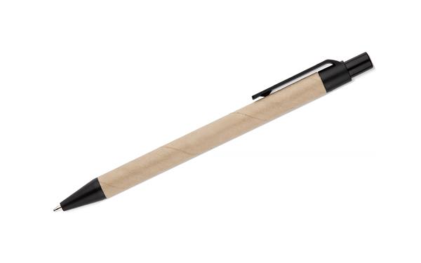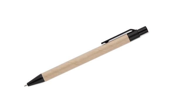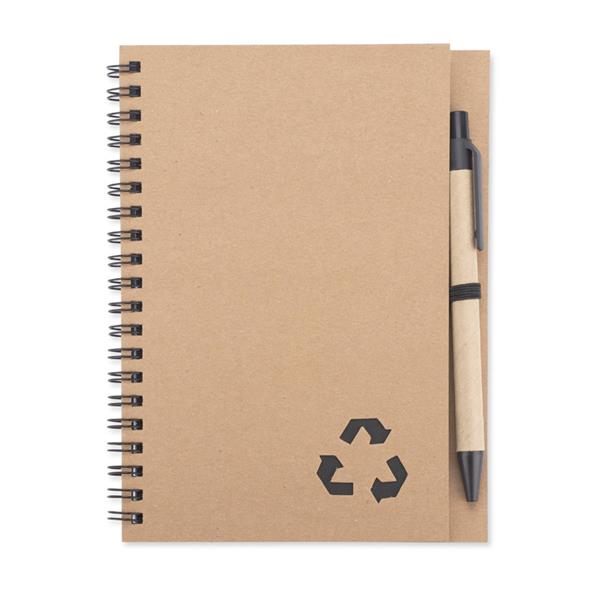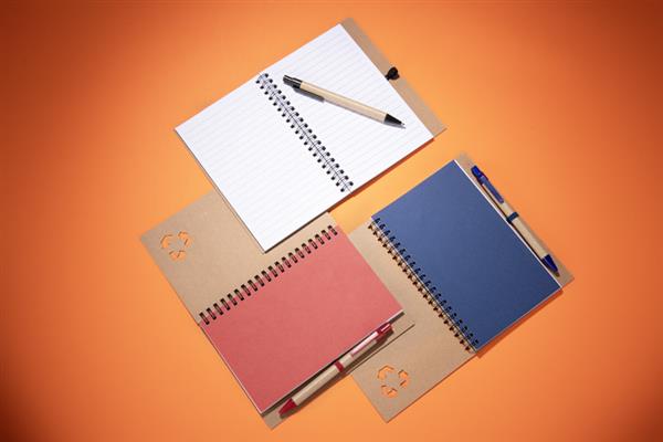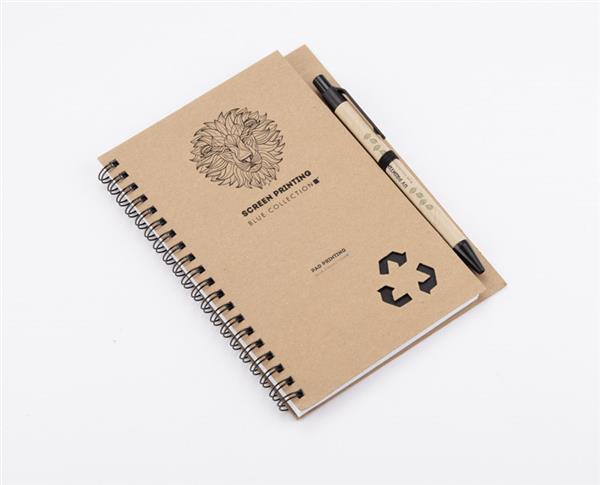 Notes SERENO na spirali w klasycznej, papierowej okładce. Posiada 70 kartek w linie. Do notesu dołączony jest w wyprofilowanym miejscu długopis, którego korpus wykonany jest z papieru. Wykończenia długopisu pasują kolorystycznie z przekładką notesu. Wkład w długopisie w kolorze niebieskim.