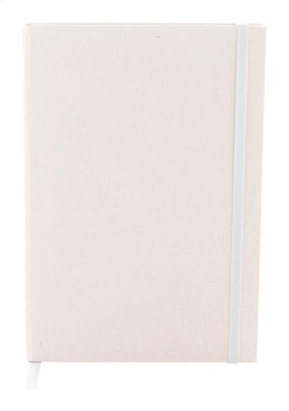 Notes z papieru z recyklingowanego kartonu po mleku, z twardą okładką, 80 kartkami w linie i dopasowaną kolorystycznie gumką. Rozmiar A5.