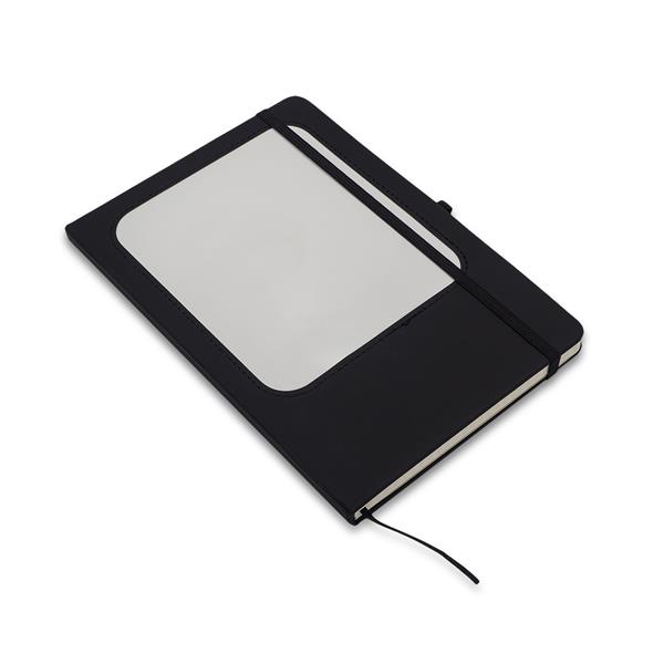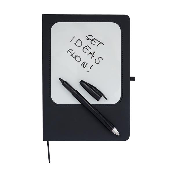 Notes A5 w twardej oprawie wyposażony w białą tabliczkę suchościeralną. Zawiera 80 kartek w kratkę, o gramaturze 70 g/m2. W zestawie znajduje się mazak do tablicy i długopis 2w1. Z tyłu okładki jest kieszonka i ściereczka do czyszczenia tablicy.