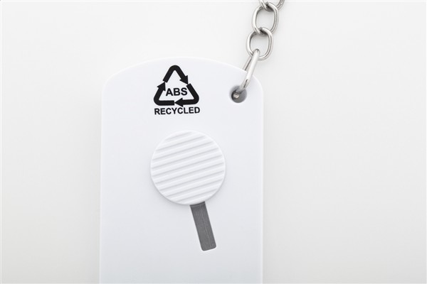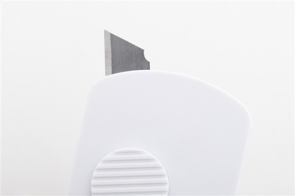 Nóż do papieru z tworzywa ABS pochodzącego z recyklingu i stali nierdzewnej, z samoczynnie cofającym się ostrzem i metalowym brelokiem.