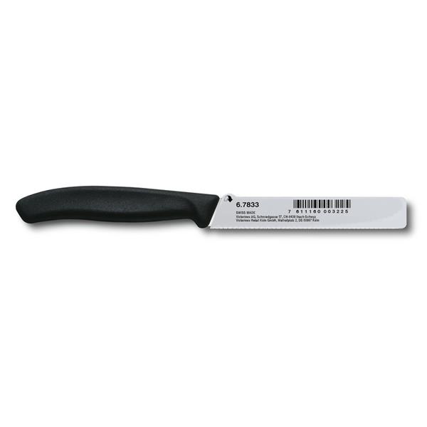 Nóż Victorinox posiada doskonałe parametry cięcia, długo pozostaje ostry, a ostrzenie nie sprawia problemów. Jego ząbkowane ostrze idealnie nadaje się dokrojenia miękkich warzyw i owoców. Zaokrąglona końcówka ostrza zapewnia bezpieczeństwo użytkowania.