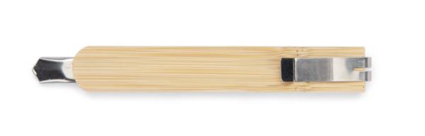 Nożyk techniczny BAMU w eleganckiej oprawie z bambusa to wszechstronne narzędzie, które znajdzie zastosowanie w wielu sytuacjach. Dzięki segmentowej budowie możliwe jest łatwe odłamanie zużytego fragmentu ostrza, co zapewnia długotrwałe użytkowanie. Personalizacja w postaci dodania logo lub hasła reklamowego sprawia, że staje się on nie tylko praktycznym narzędziem, ale także efektywnym nośnikiem reklamy.