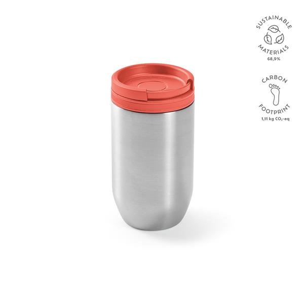 Od codziennej porcji kawy po orzeźwiającą mrożoną herbatę – nasz kubek z recyklingowanej stali nierdzewnej o pojemności 430 ml (320 ml netto) zapewni Ci wszystko. Jego podwójne ścianki izolacyjne utrzymują temperaturę gorących i zimnych napojów. Gdziekolwiek jesteś, ciesz się każdym łykiem w idealnej temperaturze.