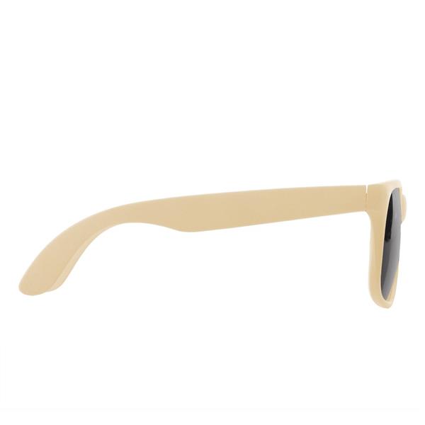 Okulary przeciwsłoneczne B’RIGHT z filtrem UV400, posiadają oprawki wykonane z włókien słomy pszenicznej o matowym wykończeniu, bawełniane etui zamykane za pomocą sznurka w komplecie, produkt wykonany z włókien słomy pszenicznej, PP, AC oraz bawełny