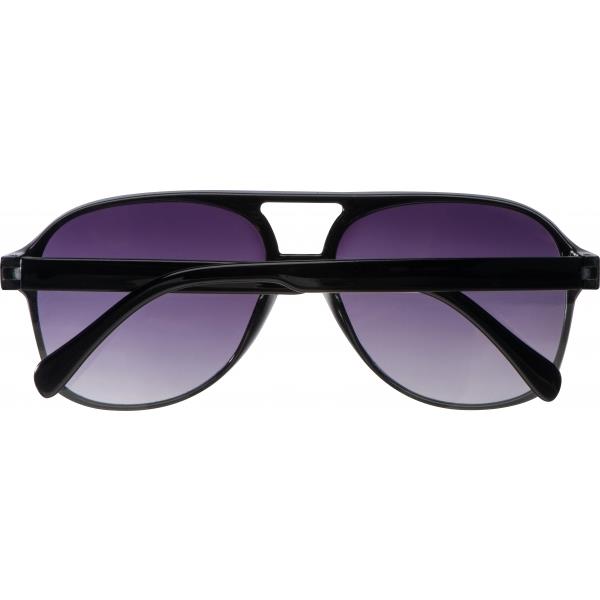 Okulary z przyciemnianymi szkłami, w czarnej oprawce, wykonane z RPET. Ochorna UV400, filtr 3 kategorii.