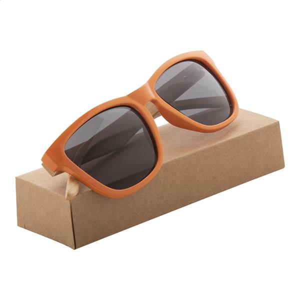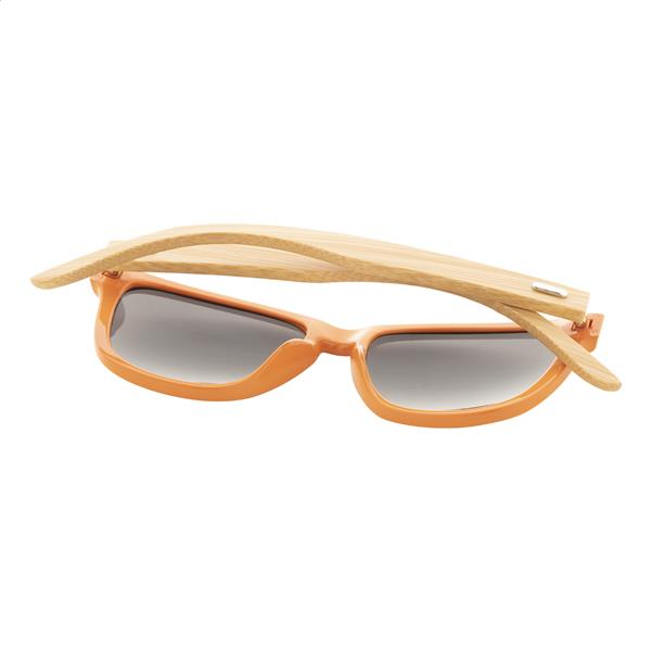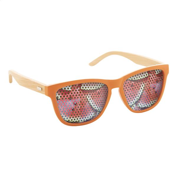 Kolorowe okulary przeciwsłoneczne z bambusowymi zausznikami. Z ochroną UV 400.