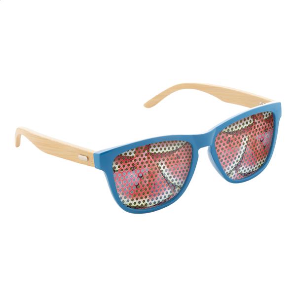 Kolorowe okulary przeciwsłoneczne z bambusowymi zausznikami. Z ochroną UV 400.