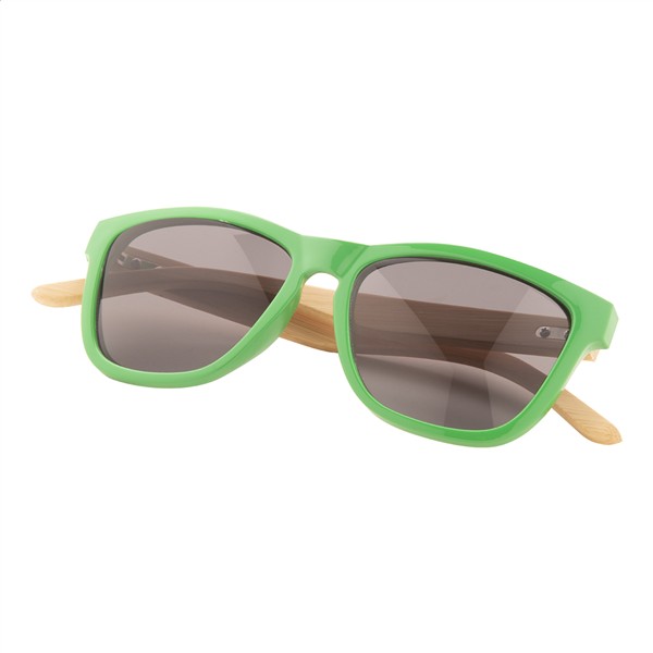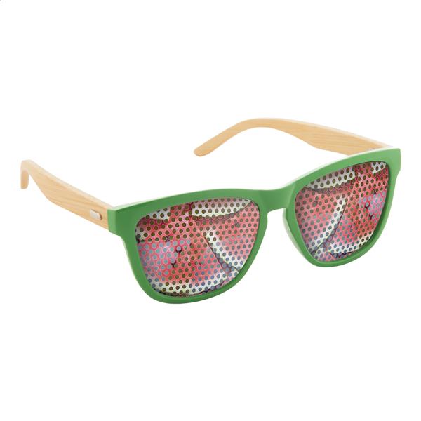 Kolorowe okulary przeciwsłoneczne z bambusowymi zausznikami. Z ochroną UV 400.