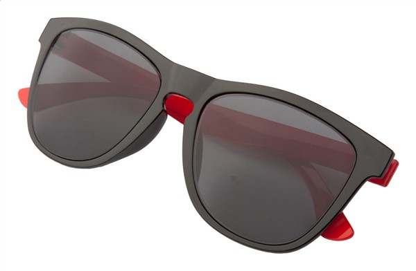 Personalizowane, plastikowye okulary z filtrem UV 400. Produkt składany z wybranym kolorystycznie oprawek i zaucszników. Min.ilość: 50 szt.