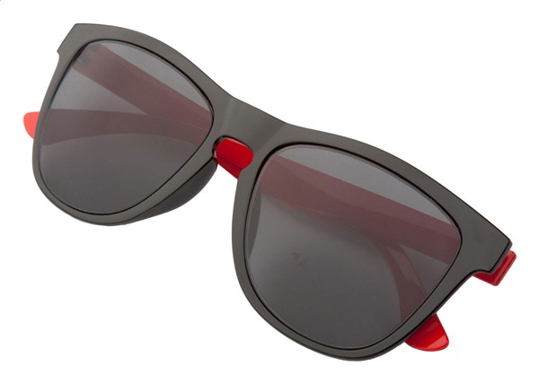 Personalizowane, plastikowye okulary z filtrem UV 400. Produkt składany z wybranym kolorystycznie oprawek i zaucszników. Min.ilość: 50 szt.
