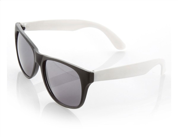 Plastikowe okulary z czarnymi oprawkami i kolorwymi zausznikami. Filtr UV 400.