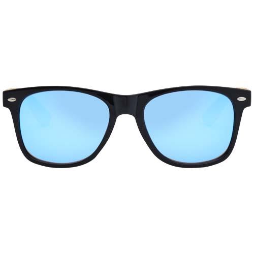 Stylowe okulary przeciwsłoneczne z kolorowymi szkłami i bambusowymi zausznikami. Soczewki UV 400 chronią przed szkodliwym promieniowaniem ultrafioletowym. Zgodność z normą bezpieczeństwa UE EN12312-1.