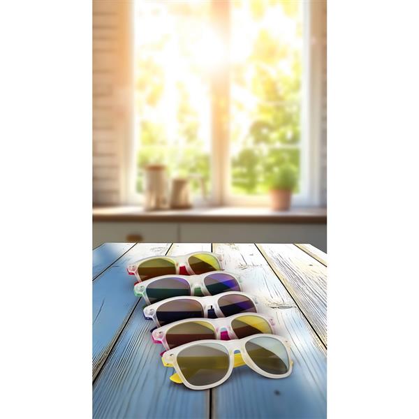 Okulary przeciwsłoneczne z filtrem UV400, posiadają lustrzane szkła i oprawki o matowym wykończeniu, produkt wykonany z PC i AC