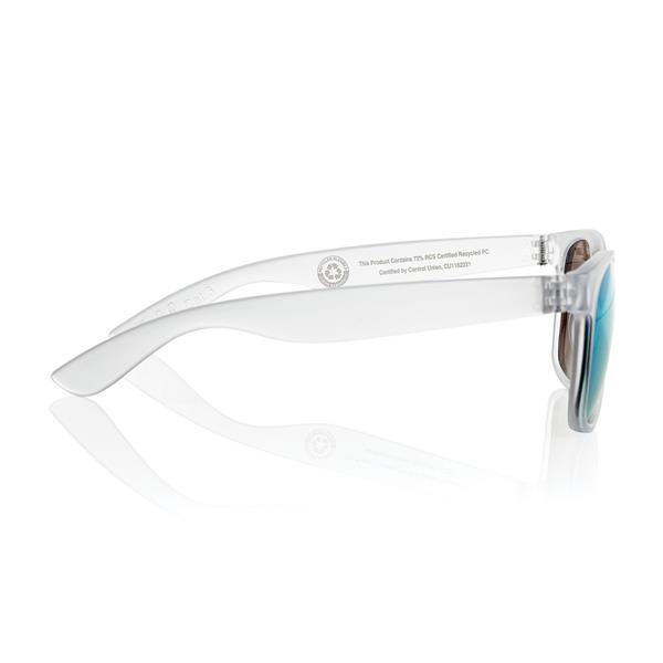 Okulary przeciwsłoneczne z filtrem UV400 i CAT 3, zgodne z normą EN ISO 12312-1, wykonane z PC z recyklingu z certyfikatem RCS, pudełko z kraftowego papieru w komplecie z certyfikatem, całkowita zawartość materiałów z recyklingu obliczona na podstawie wagi całkowitej produktu: 72%