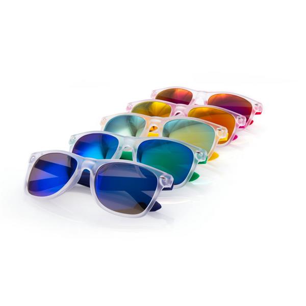 Okulary przeciwsłoneczne z filtrem UV400, posiadają lustrzane szkła i oprawki o matowym wykończeniu, produkt wykonany z PC i AC