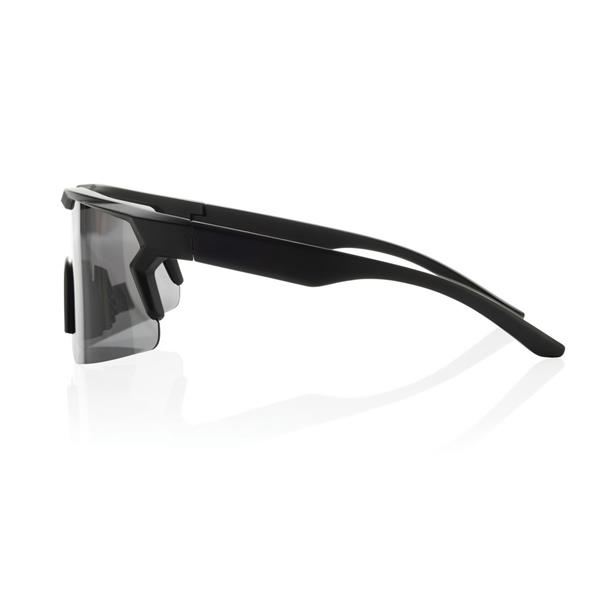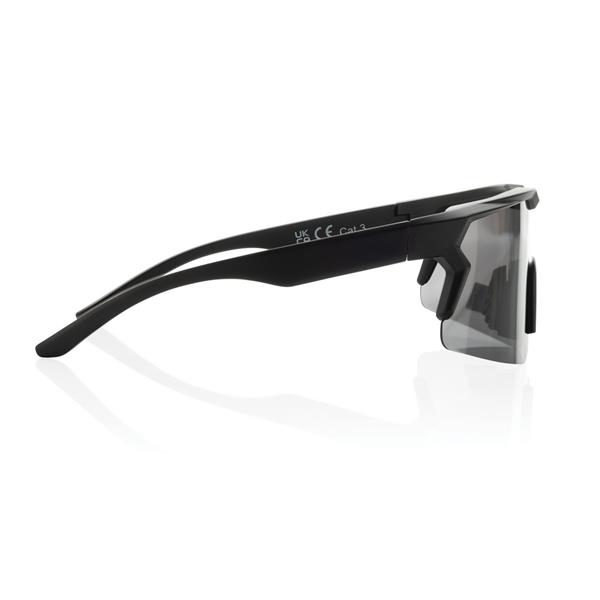 Sportowe okulary przeciwsłoneczne z filtrem UV400 i CAT 3, zgodne z normą EN ISO 12312-1, soczewki z polaryzacją, pokrowiec w komplecie, wykonane z PC z recyklingu z certyfikatem RCS, pudełko z kraftowego papieru w komplecie