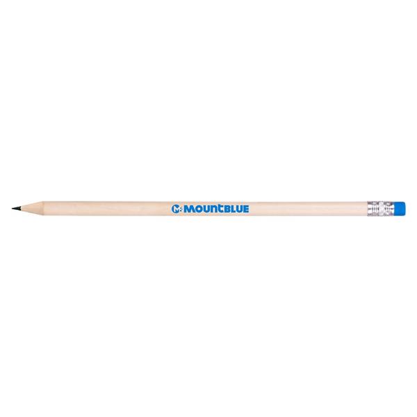 Ołówek z gumką, posiada naostrzoną końcówkę, produkt wykonany z drewna