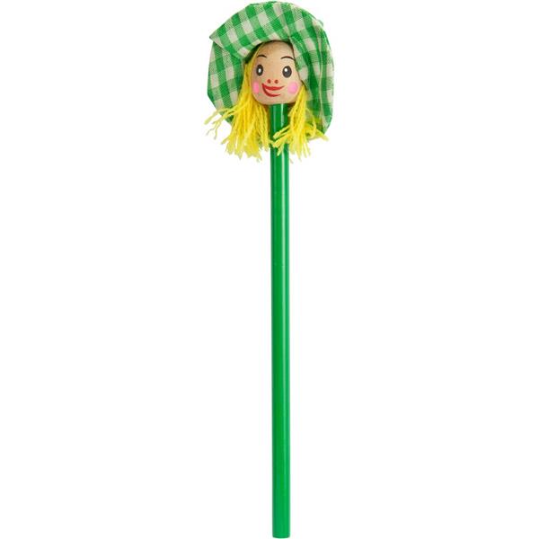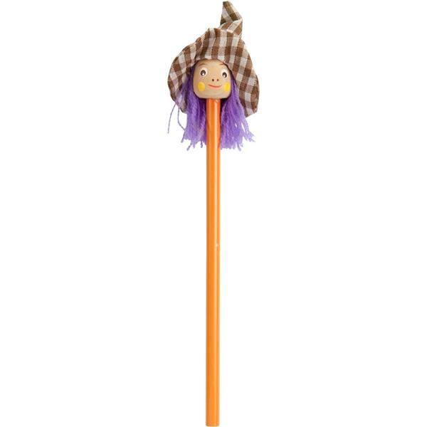 Ołówek „czarownica” z kolorowym trzonem, końcówka nie jest naostrzona, występuje w 6 różnych wzorach sprzedawanych losowo, produkt wykonany z drewna