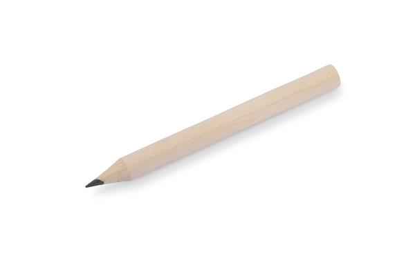 Krótki, drewniany ołówek IKKO z szeroką możliwością znakowania. Długość 8,5 cm. Ołówek zatemperowany.