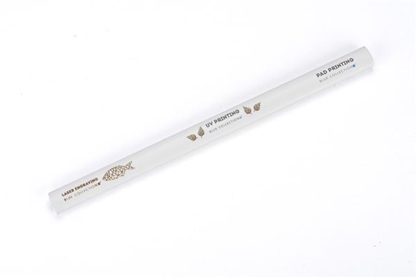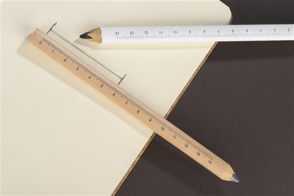 Klasyczny ołówek stolarski z linijką wykonany z drewna. Twardość rysika: F