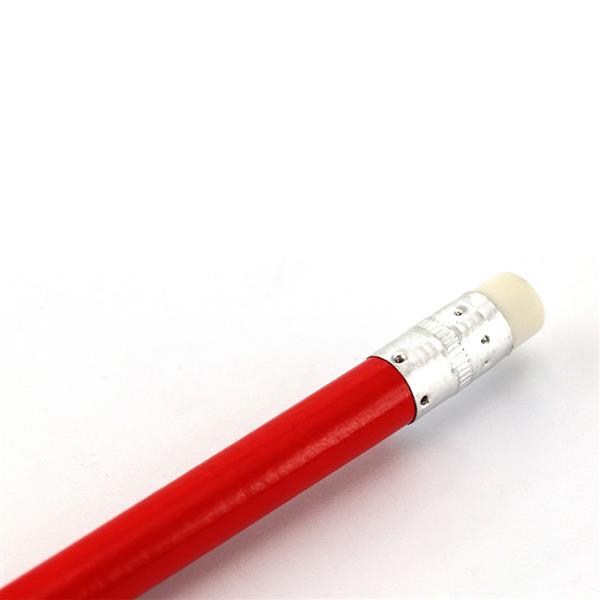 Ołówek z gumką i kolorowym trzonem, posiada naostrzoną końcówkę, produkt wykonany z drewna