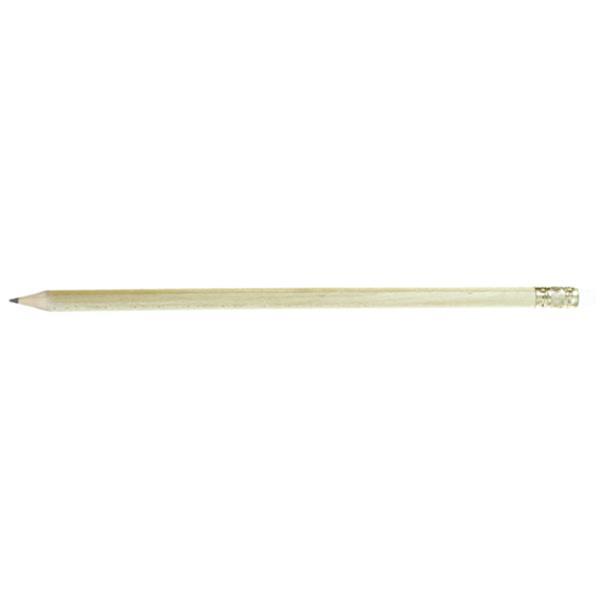 Drewnieny ołówek z gumką, zatemperowany. Rozmiar: 19 x 0,7 cm T1 (tampodruk): 5 x 0,4 cm L1 (grawer laserowy): 7 x 0,4 cm Kolor: Light Brown