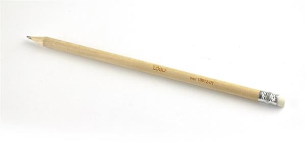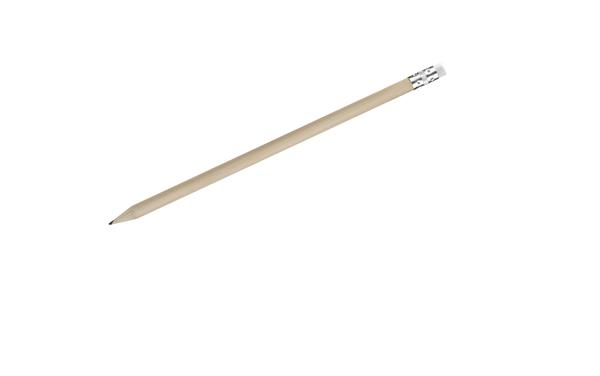 Klasyczny, drewniany ołówek z gumką. Twardość HB. Ołówek zatemperowany. Logo wygrawerujemy lub nadrukujemy na powierzchni ołówka.